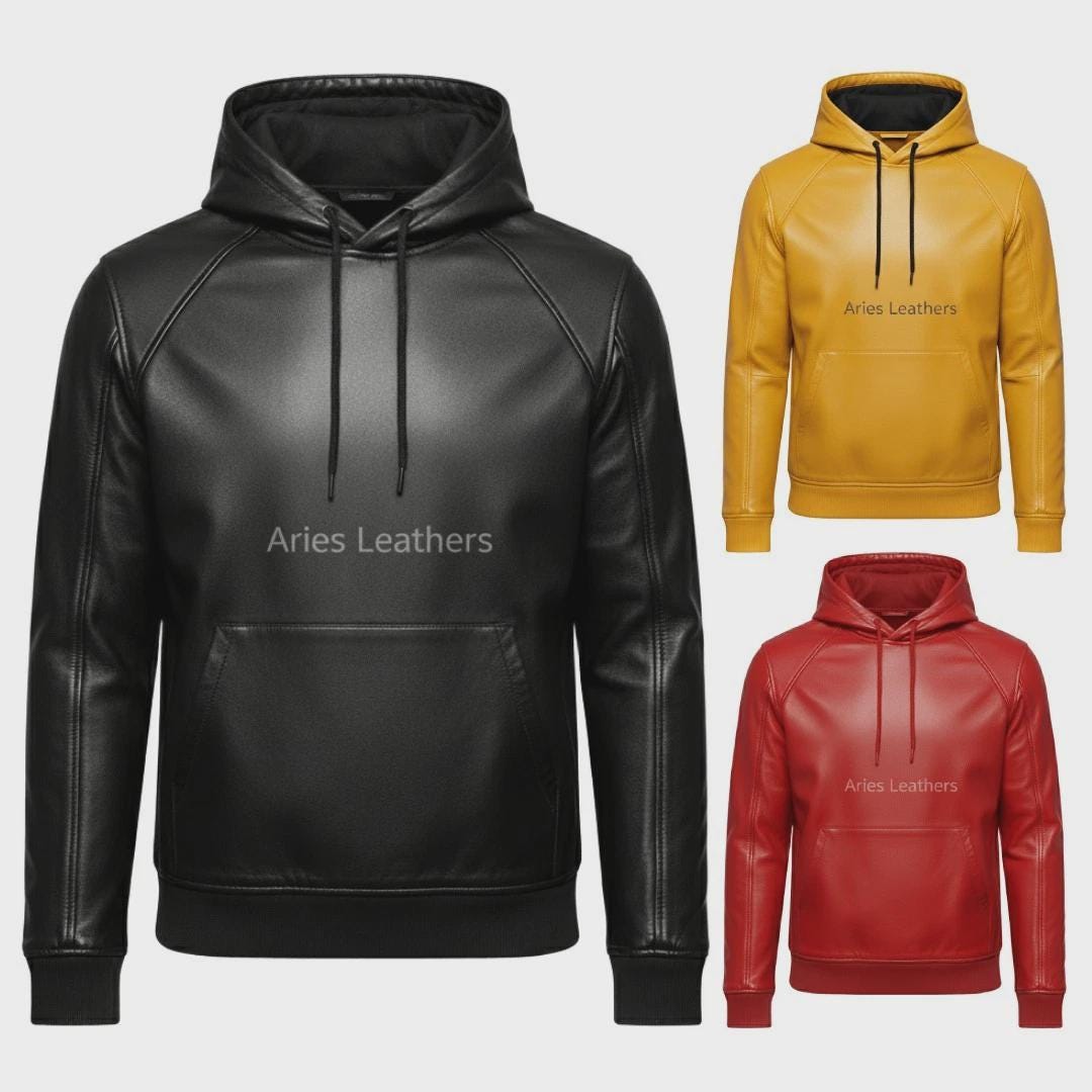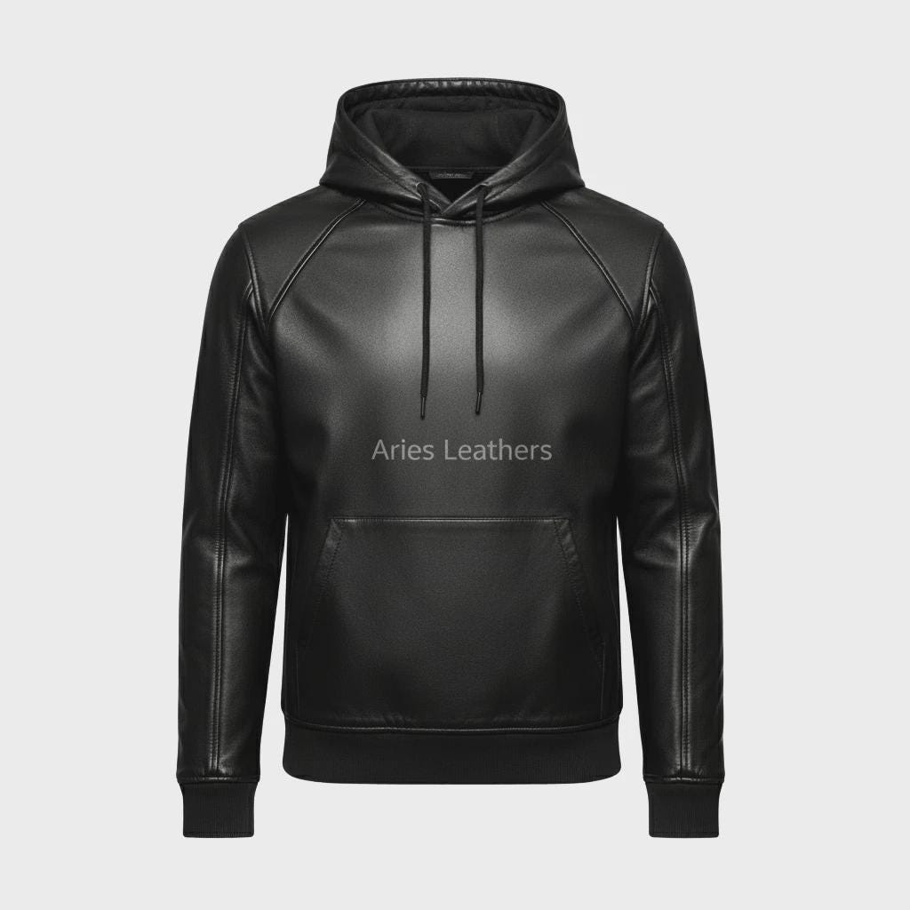 Hey there! Looking to make a bold statement with your wardrobe? Our Leather Hoodie is exactly what you've been searching for. This isn't just any ordinary men's hoodie; it's a masterpiece of craftsmanship, designed to elevate your streetwear game to a whole new level. Imagine slipping into this luxurious leather sweat shirt—handmade with meticulous attention to detail, it delivers on both style and comfort.Crafted for the modern man who values both aesthetics and practicality, this hoodie seamlessly blends the edgy vibe of leather streetwear with the casual comfort of a traditional hoodie. The supple leather exterior offers a sleek look, while the soft lining ensures you stay cozy, whether you're heading out for a night on the town or just kicking back with friends. Equally perfect as a men’s clothing gift, this hoodie is sure to impress with its unique blend of rugged edge and sophisticated style. Picture yourself rocking this handmade men's hoodie, catching admiring glances as you stroll through the city streets. It's more than just clothing; it’s an experience—one that speaks to your individuality and flair.But don't just take my word for it; you have to feel the quality for yourself. Each leather sweat shirt is crafted to withstand the test of time, offering durability while maintaining its flattering fit. When it comes to making an unforgettable impression or finding that standout piece in your wardrobe, our Leather Hoodie is your go-to. So why wait? Dive into the world of leather streetwear and redefine your look today!