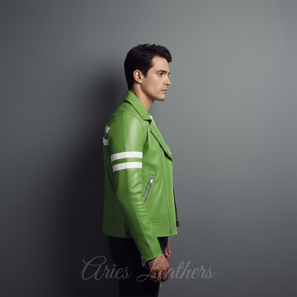 Crafted from high-quality genuine soft Lambskin leather, this Ben 10 jacket features the signature green and black color scheme, bold white accents, and detailed stitching that reflects the spirit of the original character’s style. The inner viscose lining ensures comfort, while the zip closure, stand collar, and fitted cut provide a sleek, modern silhouette that suits both casual and themed looks.