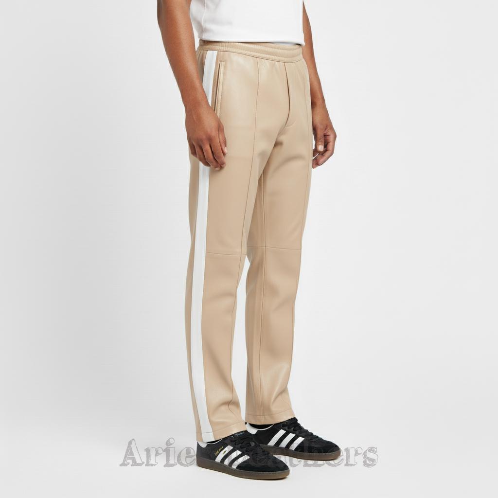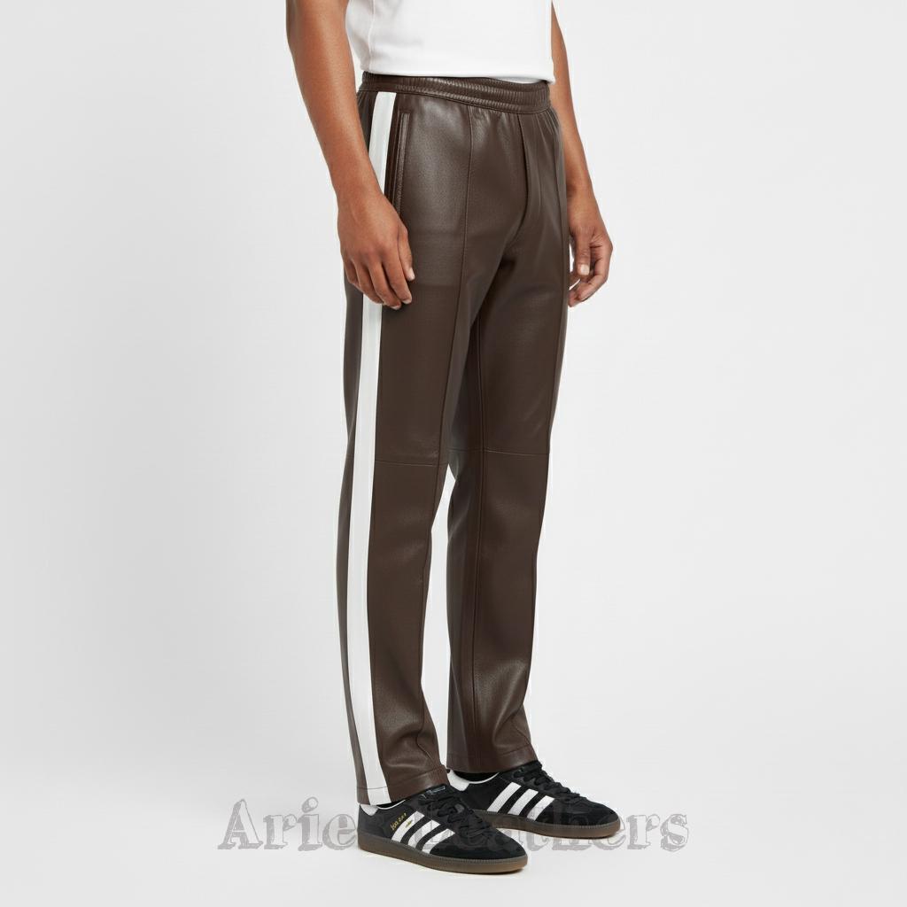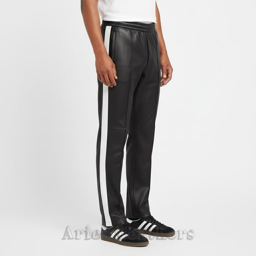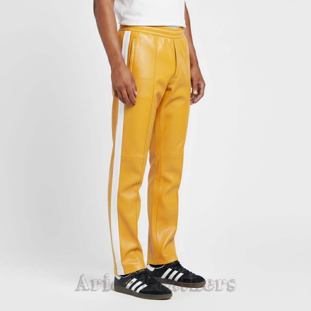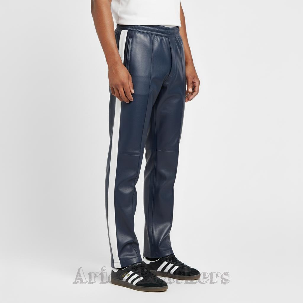 These men’s leather track pants bring that retro athletic swagger to the moment, blending a sleek lambskin leather finish with bold color options that pop instantly. Made for the guy who loves a little edge in his wardrobe, these pants hit the sweet spot between sporty and stylish — perfect for nights out, streetwear fits, or leveling up your everyday vibe. The side stripe keeps the look classic, while the vibrant palette lets you choose the energy you want to walk in. Slip into them and you’ll feel that confident, future-facing drip — no pretending needed.