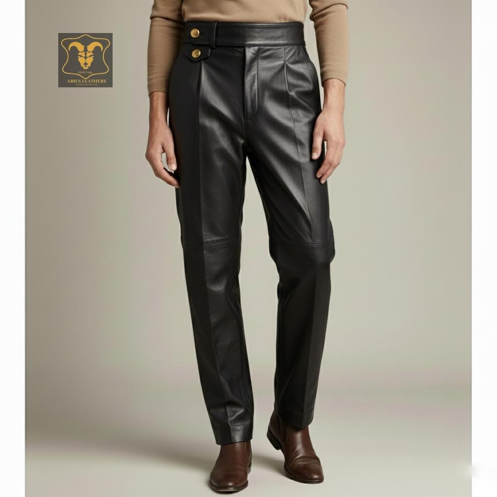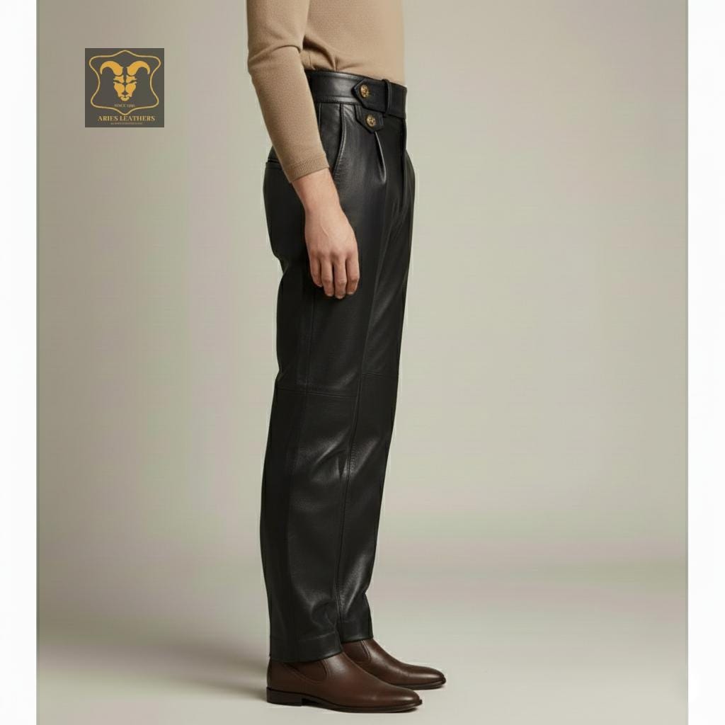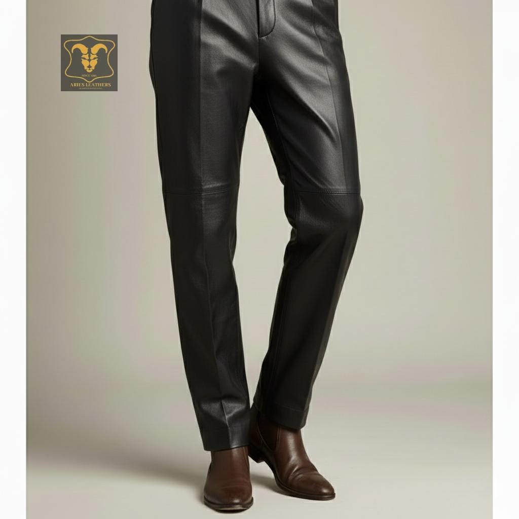 Tags Men’s leather formal pants, lambskin leather trousers, black leather office pants, business leather trousers, genuine leather pants, classic fit leather trousers, men’s office wear leather pants.