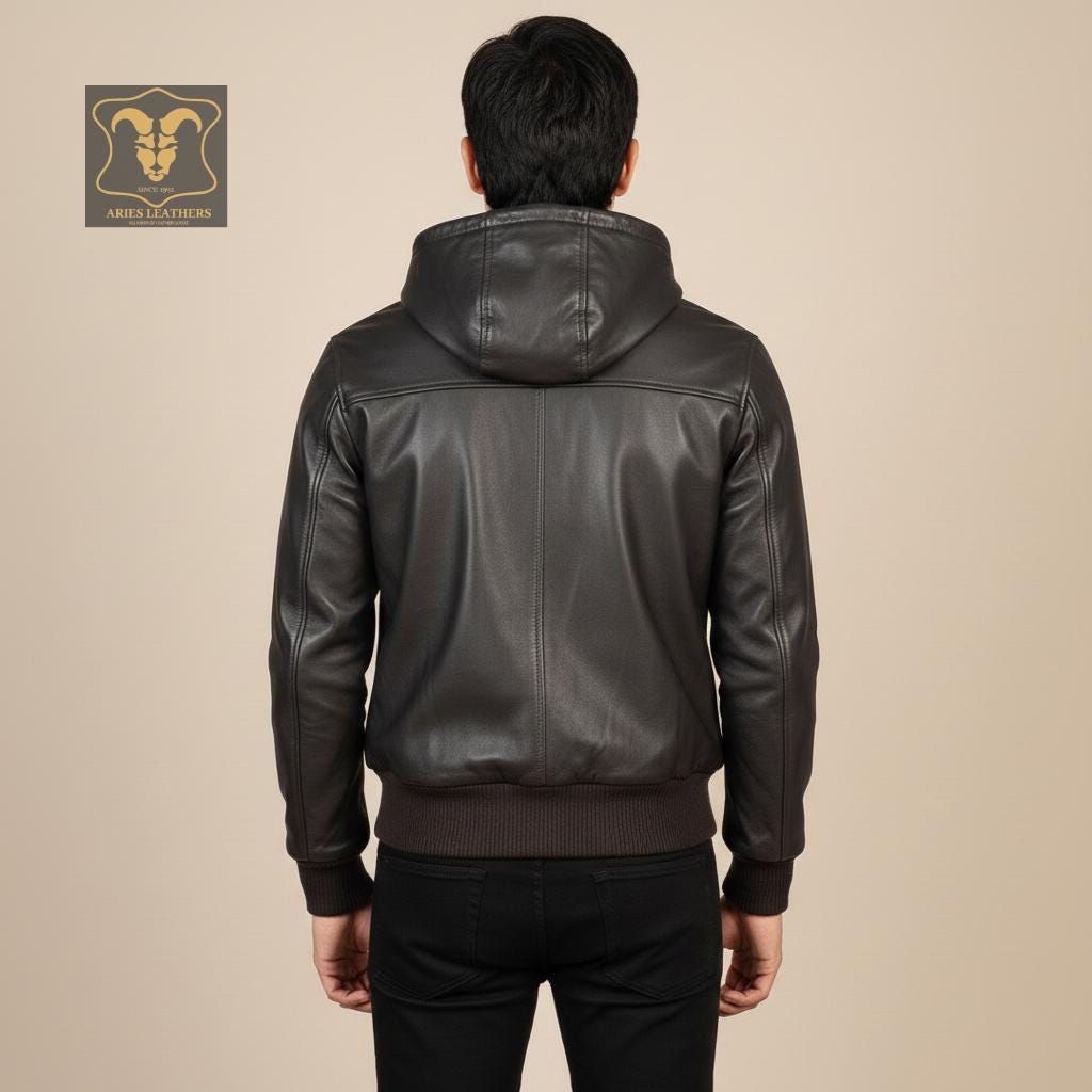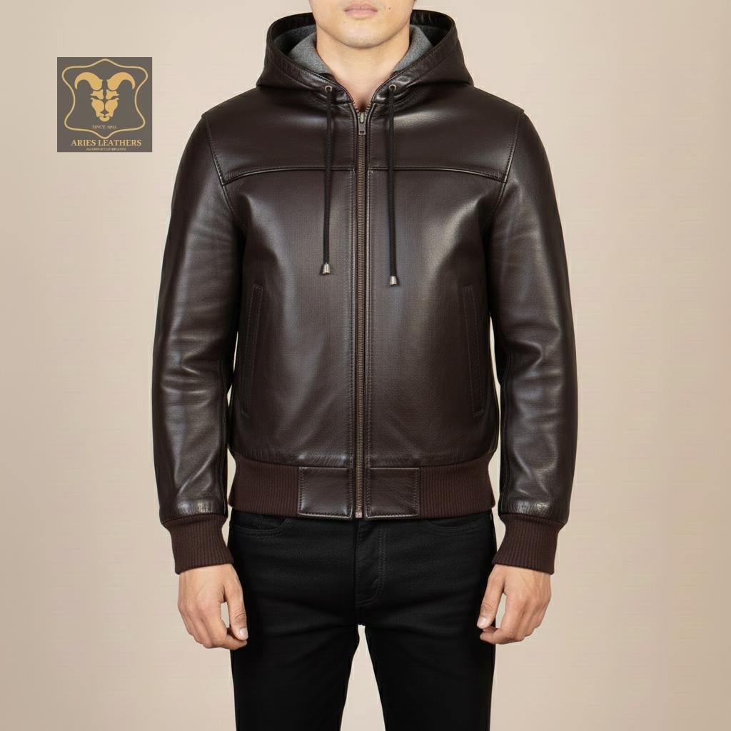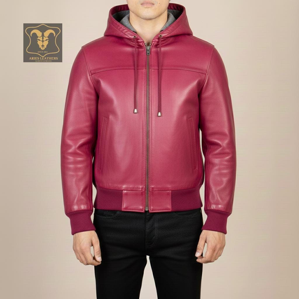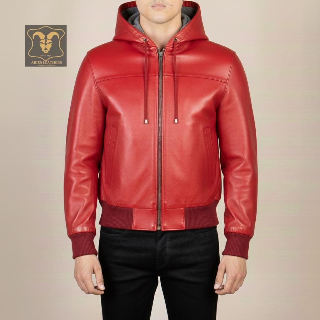 Hey there! Searching for the ultimate blend of style and comfort? Our Leather Bomber Jacket with Hood is a must-have for the modern man. This Mens Leather Hoodie is crafted from genuine leather, ensuring a sleek look and durable wear. Perfect for winter, this warm hoodie men can't resist combines the edgy vibe of a biker hoodie with the luxurious feel of a real leather hoodie. Trust me, whether you're hitting the streets or heading to a night out, this black leather hoodie will have you looking sharp and staying cozy.