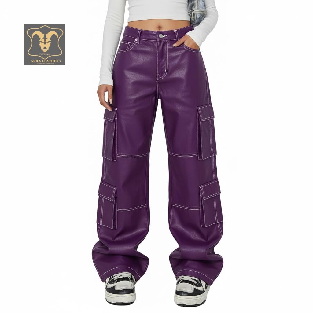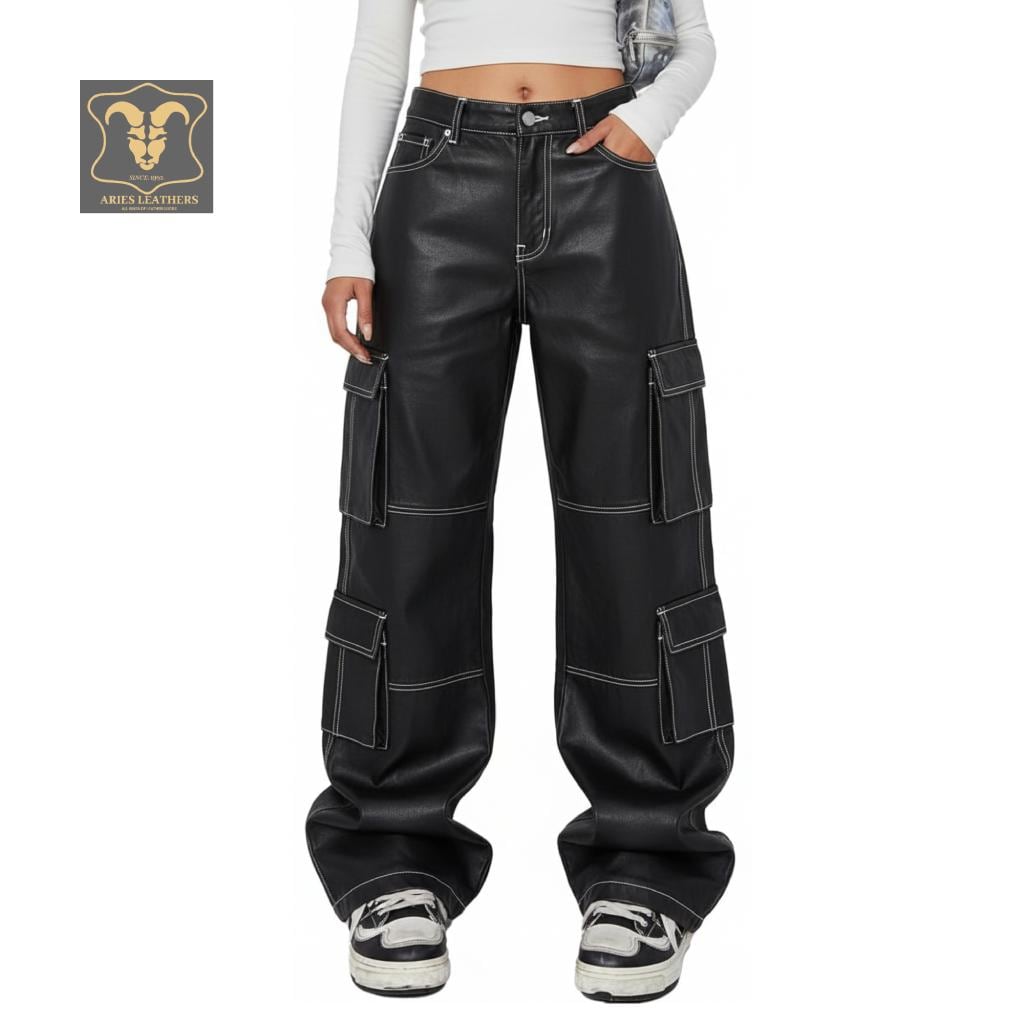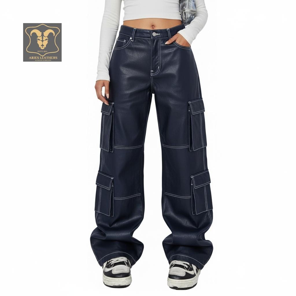 Our handmade women’s leather cargo pants, crafted from genuine lambskin, are just what you need. These wide leg wonders feature a high waist, baggy fit, and utility pocket design—perfect for that y2k vibe you've been craving. Whether you're going for casual trousers or something with an edgy twist, these leather pants are a fantastic gift for her (or yourself!). Trust me, these are the cargo pants your wardrobe has been missing!