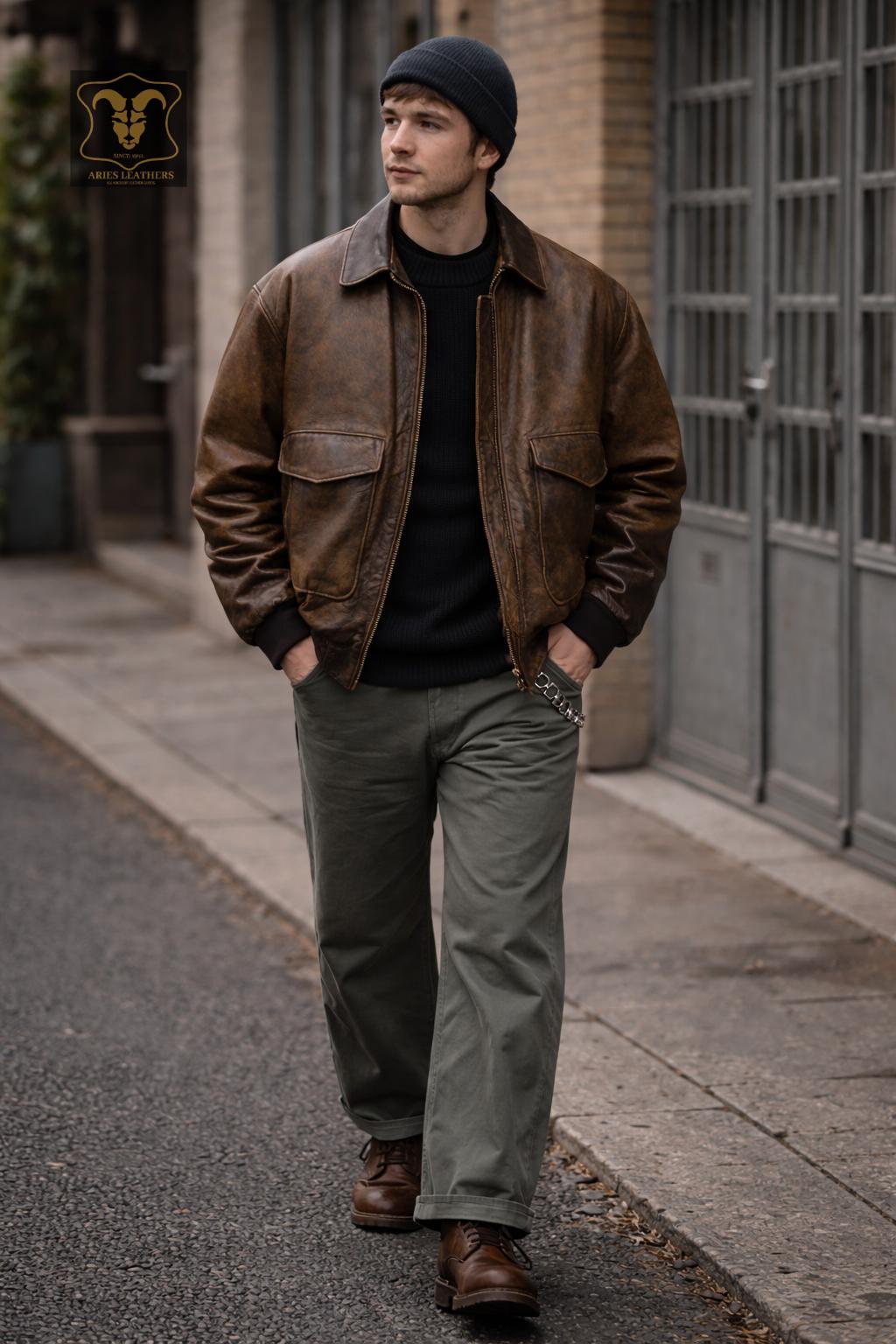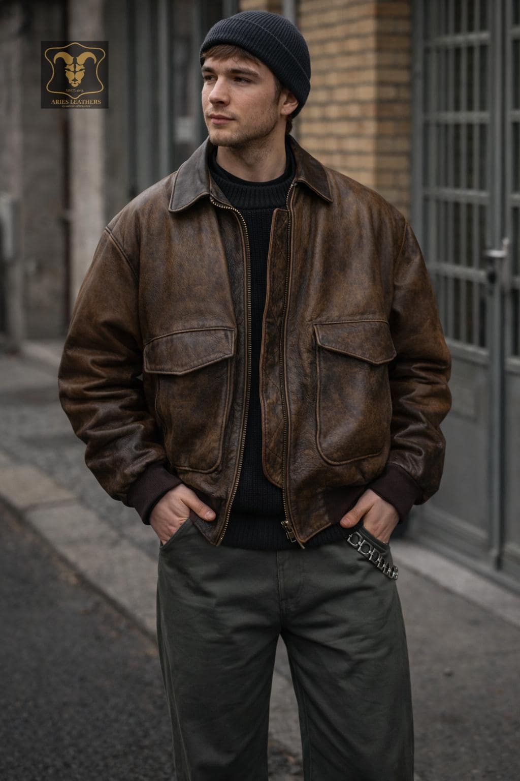 Perfect for autumn and winter styling, this distressed leather bomber pairs effortlessly with sweaters, hoodies, jeans, chinos, or cargo pants 🍂❄️. Wear it for casual outings, concerts, festivals, travel, or nights out when you want a bold, vintage-inspired edge.