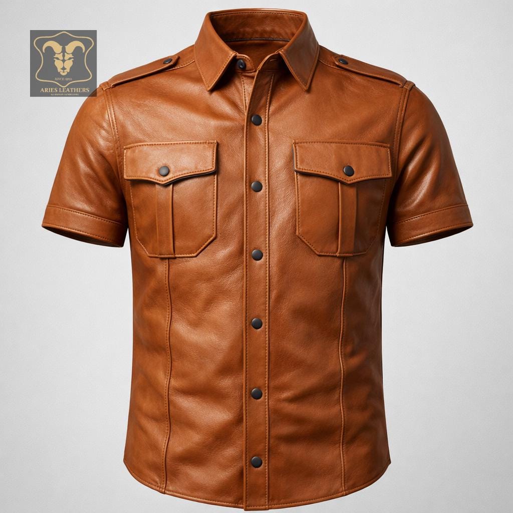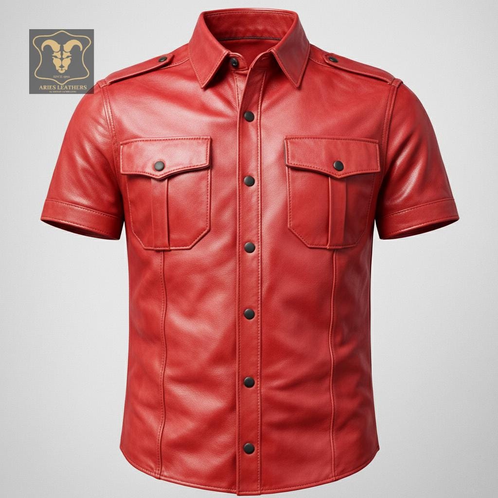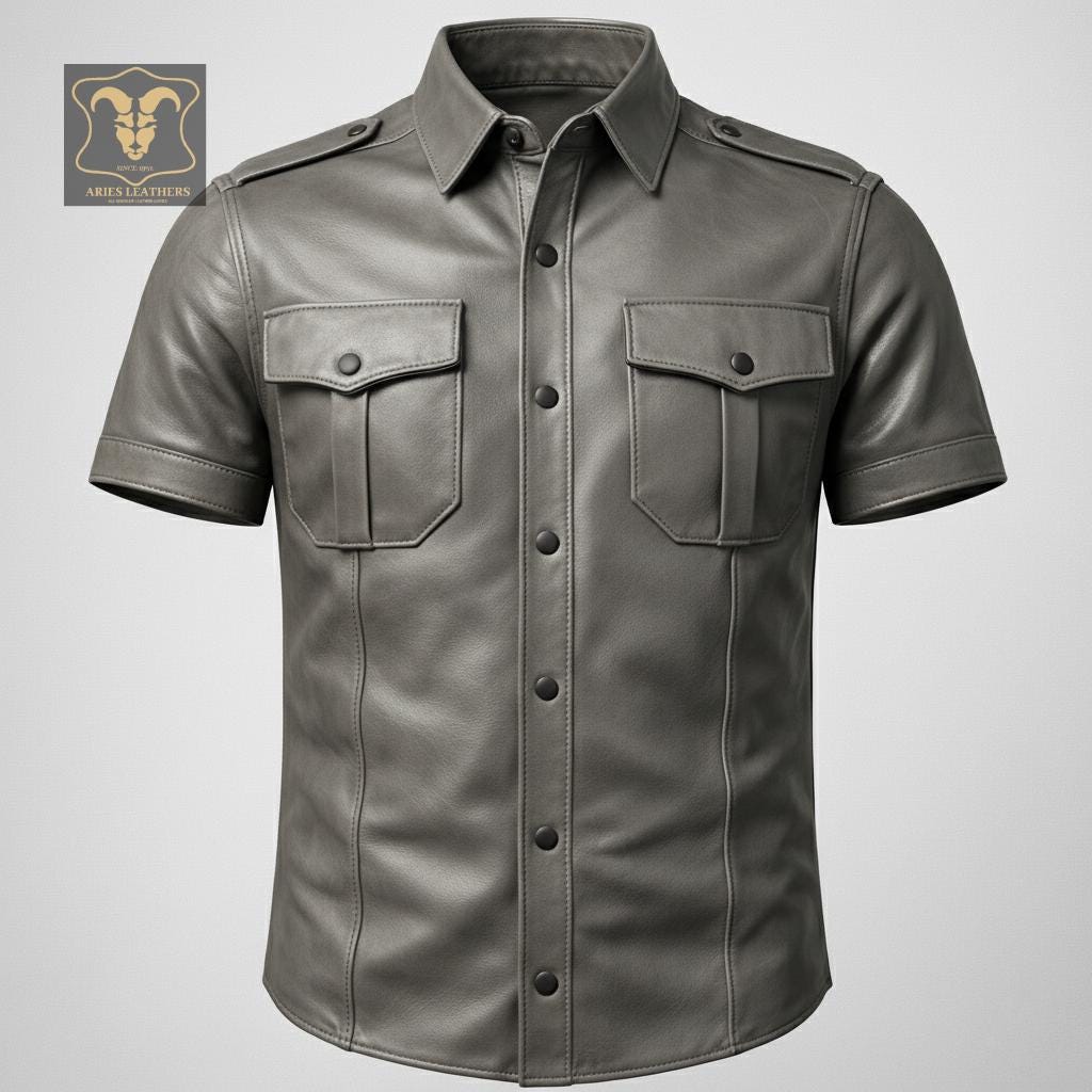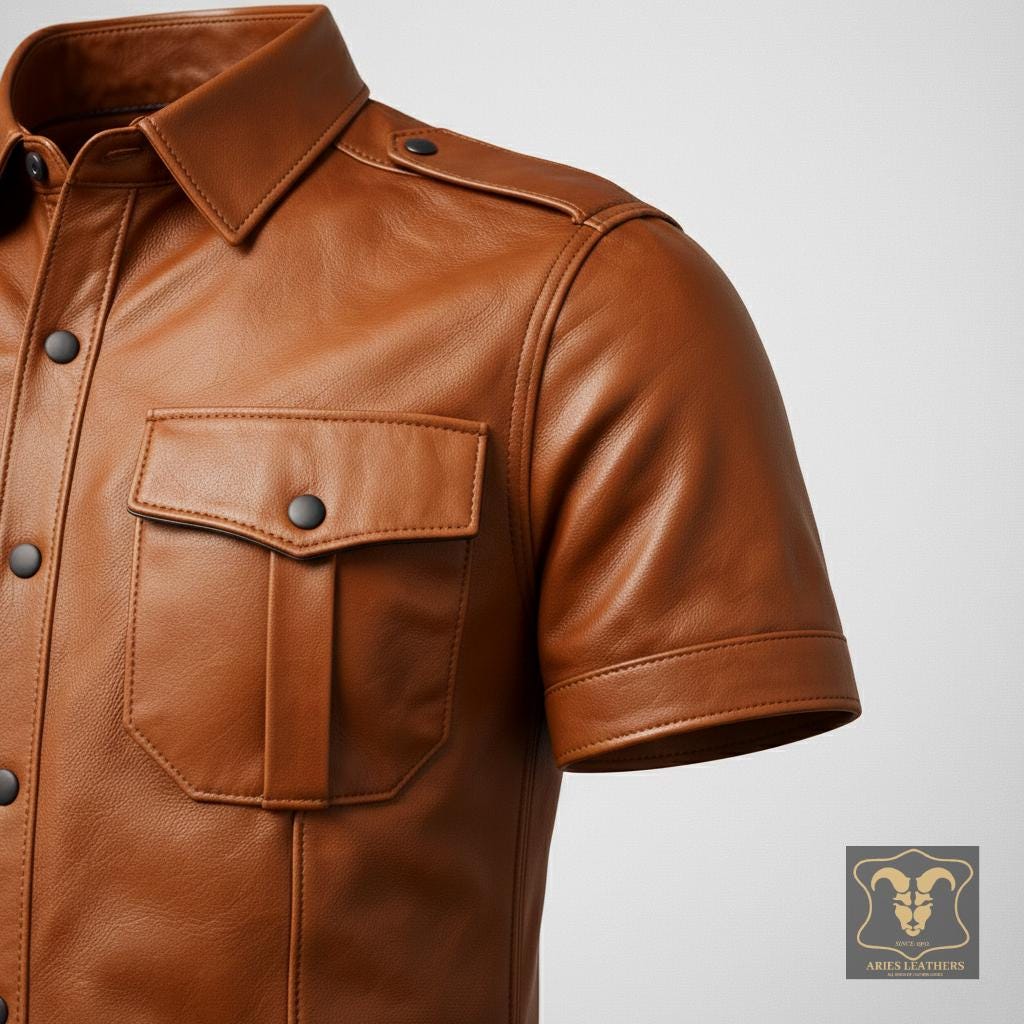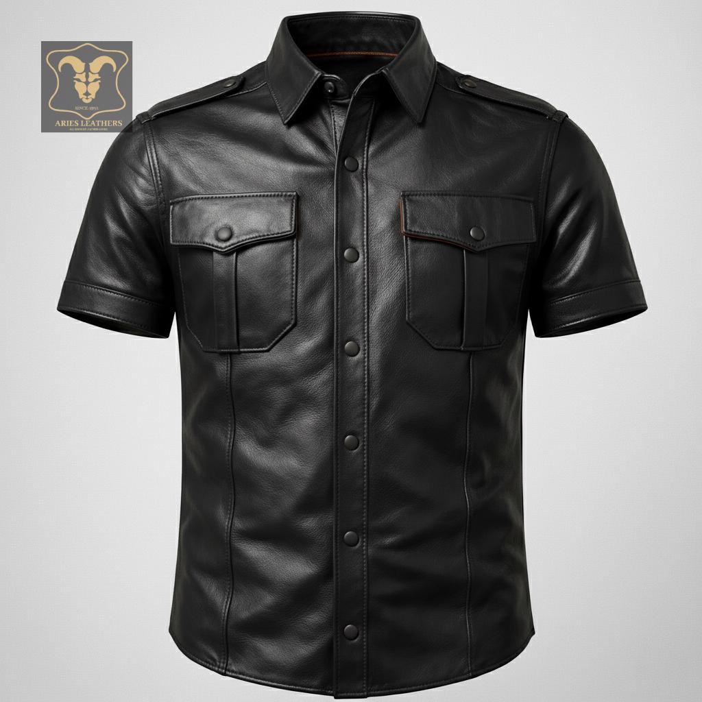 This men’s lambskin leather shirt is designed for bold style lovers who want a sharp, confident look with a rugged edge 🖤. Inspired by military police uniforms and classic western biker aesthetics, this short sleeve leather shirt delivers standout presence for nights out, rides, clubwear, or statement fashion. Crafted from ultra-soft genuine lambskin, it offers broken-in comfort fast while maintaining a structured, masculine silhouette that turns heads.