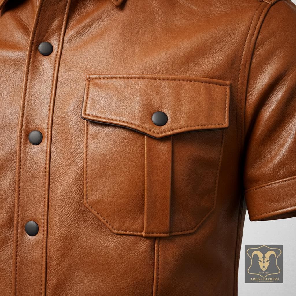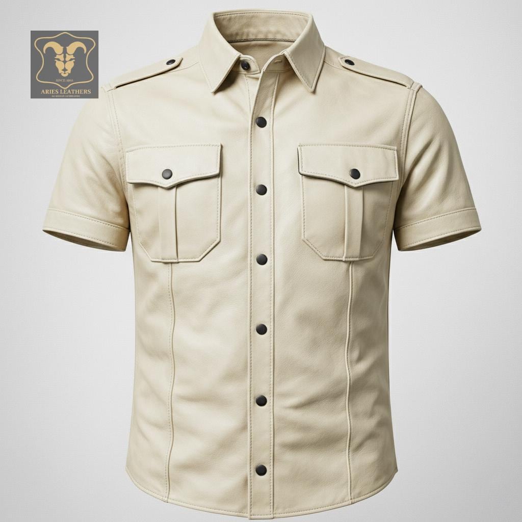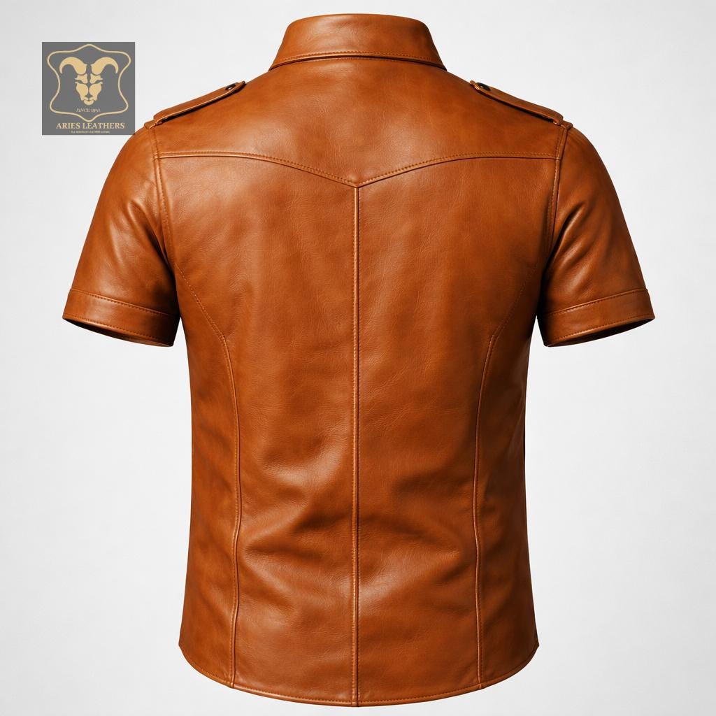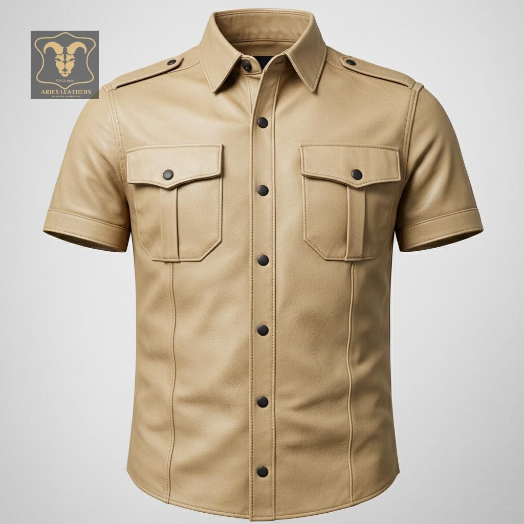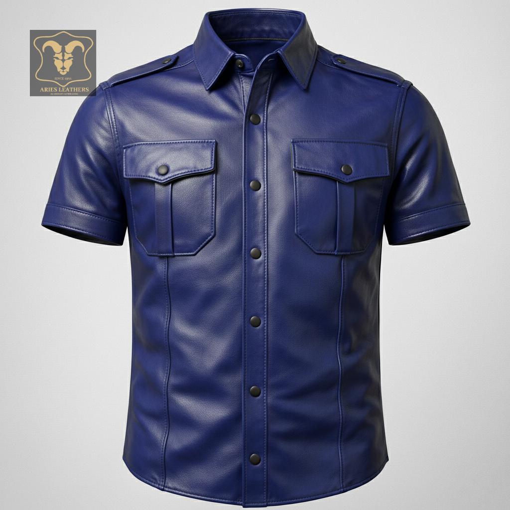 This men’s lambskin leather shirt is designed for bold style lovers who want a sharp, confident look with a rugged edge 🖤. Inspired by military police uniforms and classic western biker aesthetics, this short sleeve leather shirt delivers standout presence for nights out, rides, clubwear, or statement fashion. Crafted from ultra-soft genuine lambskin, it offers broken-in comfort fast while maintaining a structured, masculine silhouette that turns heads.